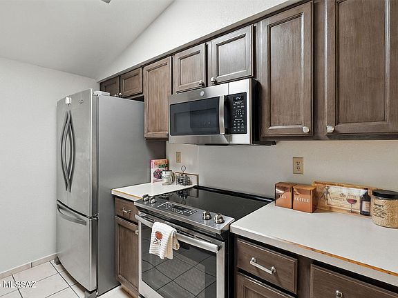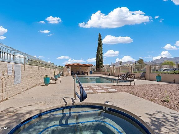 Authentic charming Tucson TH! Bright & airy w/nice neutral tile, multiple skylights & storage galore! Spacious living rm w/plant shelves & plantation shutters adjoins nice kitchen w/built-in shelving, ample cabinet space, tasteful Mexican tile & cozy bar for casual dining. Spacious dining area off kitchen leads out to patio for indoor/outdoor entertaining & can double as a den. Primary suite features patio access & very lg walk-in closet w/ensuite bath. 3rd bd at front of home can be used as office or family rm. Includes massive closet for storage or reconfigure for additional clothing space. Freshly painted interior! Located in desirable community w/access to sparkling pool & spa just minutes from great shopping, dining & other amenities offering comfort, convenience & charm all in one!