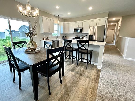New Construction Home ready for QUICK MOVE-IN! Self Guided Tour Available Daily by scanning QR code on the front door and receiving unique access code. One level home features a Concrete Front Porch, Finished Walkout Lower Level, 5 Bedrooms, 3 Baths, & 3 Car Garage. Main Floor offers 9' Ceilings, Kitchen, Dining Room, Great Room, Laundry Room, Mudroom, 3 Bedrooms, and 2 Bathrooms. Kitchen highlights include a center island & window with backyard views. Primary Suite features a private bath & walk-in closet. Lower Level features a Family Room, 4th & 5th Bedrooms, 3rd Bathroom, & Storage. Front door self tour electronic keypad not included with the home. Some photos may not depict actual plan & finishes. All measurements are approximate.
