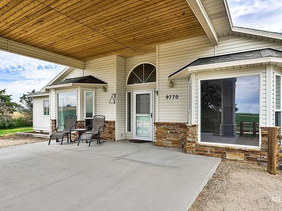 Four parcels make up this nearly 10 acres of rural tranquility w/ views of the Owyhees & Lake Lowell. Fully fenced. Bring your horses, chickens, cattle, goats...this property is designed for all of it. Three pastures, riding arena, livestock loading pen w/ feed panel, & 7 acres of water rights. Separate well for pressurized irrigation. Just 3 yr old pump w/ 18 HP. A 33' x 66' Cleary outbuilding - enclosed 30' x 33' shop & 33' x 36' pole barn. The spacious home offers 3 bedrooms, 3 bathrooms, office, 2 living spaces, lrg dining area, & flex room. Newer kitchen appliances, some hardwood flooring, newer Champion windows in kitchen, dining, & master bed /bath, fully restored woodstove hearth & mantle, Remodeled 3rd bath & flex room. A covered entry w/ circular drive through, lrg covered back patio, lrg 3 car garage w/ 10' center bay & generator hookup on electrical panel. So much more to this property. A full list of features & updates is available.