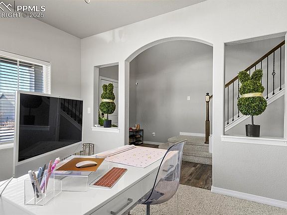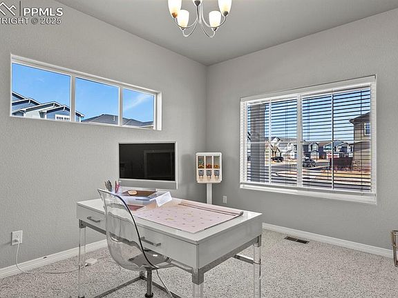 Stunning 7-Bedroom Home on a Corner Lot in Meridian Ranch This beautifully upgraded 7-bedroom, 4-bathroom home in the highly sought-after Meridian Ranch community offers the perfect blend of luxury and functionality. Ideally situated on a corner lot, it is just minutes from schools, shopping centers, and the clubhouse. The master suite is a private retreat, featuring an unobstructed view of Pikes Peak. For added convenience, there is also a bedroom on the main floor, Perfect for guests or multigenerational living. Inside, the chef’s kitchen boasts granite countertops, upgraded lighting throughout, and ample space for entertaining. The open floor plan seamlessly connects the living and dining areas, creating an inviting atmosphere. The finished basement is a true highlight, featuring an amazing wet bar, a weight room, a large family room, and a second laundry room, adding extra convenience. Step outside to an expansive 20’ x 37’ patio, perfect for outdoor gatherings. The backyard is beautifully landscaped and includes a 16’ x 16’ storage shed, a drip line around the perimeter, and a dedicated dog run. Both the front and backyard are fully landscaped for a polished and welcoming curb appeal.