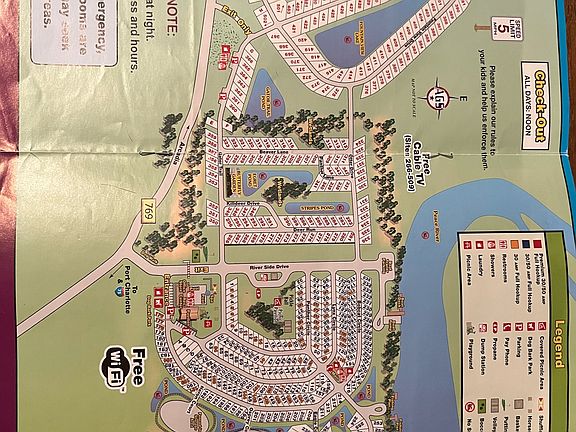 Additional Rigs on site will only be allowed to be in site for 36 hours. Extra trailers on site cannot be over 12' in length. Temporary storage arrangements need to be made directly with the office. Only one trailer can be connected to the electric box. Temporary storage is a complimentary service for the duration of your stay at riverside RV resort. Golf carts are welcome with proof of insurance and completion of liability waiver.