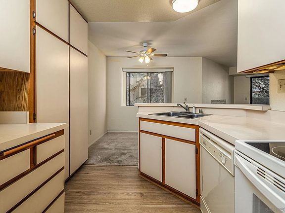 Welcome Home to Creekside Condos in Mira Mesa. This spacious top-floor, end-unit condo offers water feature views in a secluded natural setting. Ceiling Fans, central heat, fireplace and a coveted 2 Car Garage with storage + Additional Parking available by permit. Just a short walk to the hot tubs, swimming pool or dog park and a convenient location for easy freeway access, the locally popular Mira Mar breweries, tasting rooms, restaurants and general nightlife and plenty of Mira Mesa shopping malls. Many Creekside residence pick this location due to it's convenient proximity to Miramar Base & Qualcomm Be sure to view the 3-D virtual tour.