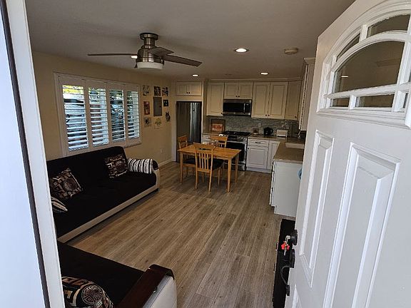 Furnished 500 sq ft ADU with private entrance. This spacious unit features a bright living room and an open-concept kitchen with quartz countertops and stainless steel appliances. The well-sized bedroom includes mirrored closet doors and large windows with plantation shutters, offering plenty of natural light.