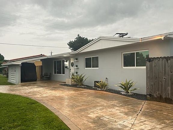 Welcome to this charming 4-bedroom, 2-bathroom large corner lot single family home that's a perfect blend of comfort and convenience. Equipped with Cat 5 hurricane impact windows, this residence ensures safety and peace of mind during inclement weather. For those with adventurous spirits, the property features convenient RV parking with a 30-amp and 110 power hookup and a dedicated boat pad.Stepping into the backyard, you'll find a well-maintained space complete with a shed for storage and a cozy fire pit--an ideal setup for gatherings and relaxation. A screened-in back porch and carport add to the outdoor allure, providing spaces to enjoy the fresh air and entertain. Inside, the kitchen is a culinary enthusiast's dream, boasting wood cabinets with soft-close features, stainless steel appliances, inviting butcher block countertops, and a convenient pantry for storage. The open concept design seamlessly integrates the kitchen with the living and dining areas, fostering a sense of spaciousness and togetherness. Additionally, a laundry/utility room adds practicality to daily living. This home is truly a haven that balances style and functionality for the modern homeowner.
