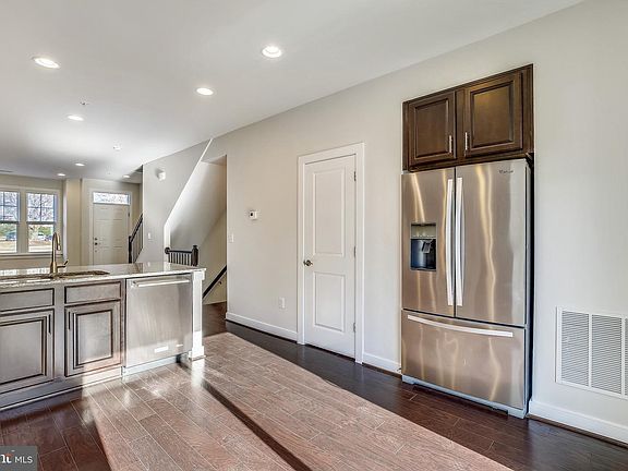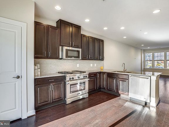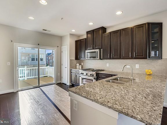 Beautifully appointed 4 level townhome with rooftop deck in sought after Crown Farm. Stunning dark hardwood flooring throughout the main level living, dining and kitchen area. Kitchen with granite countertops and tiled backsplash, 42" solid wood cabinetry, breakfast bar and stainless steel appliances including an upgraded commercial style gas range. Powder room on the main level and deck off the kitchen make this open floor plan perfect for entertaining guests. Upper level primary suite with walk-in closet and upgraded ensuite full bath with oversized shower and double vanity with granite countertops. Laundry room on the upper level with new washing machine. Second bedroom with ensuite full bath featuring upgraded tile tub/shower combination and granite topped vanity. Top floor features an additional upgraded full bathroom, third bedroom and extra space for home office, den or full guest suite which walks out to the spectacular rooftop deck. Lower level 2 car tandem garage provides space for storage or potential home gym. Fresh neutral paint throughout the entire home and luxury blinds on all the windows make this home move in ready. The Crown Farm HOA includes a pool, community center and snow removal. Walk to Target, Harris Teeter, restaurants and shops. Quick commute to the Metro and less than 1 mile to I270 and 370. The Washingtonian Rio and Crown Farm offer plenty of amenities to everyone! Check out the floor plan and photos on the tour link!