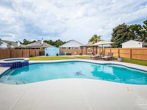 Inviting 4-Bedroom, 3-Bathroom Home with 3-Car Garage, New Roof and Sparkling Gunite Saltwater Pool! Designed for modern living and effortless entertaining, this spacious residence boasts an open-concept floor plan with high ceilings and elegant wood design porcelain tile. Custom woodworking details—such as framed windows and doors, along with classic wainscoting—add a touch of luxury and craftsmanship to the living spaces. The heart of the home is a seamless flow between the living room, dining room, and kitchen—perfect for gatherings or relaxing evenings. The formal dining area and casual breakfast nook offer flexible dining options to suit any occasion. A versatile flex space with double French doors provides the ideal setting for a home office, fitness room, or children's playroom. Featuring four generously sized bedrooms and three well-appointed bathrooms, including a convenient pool bath with access to both the lanai and interior, this home is built for comfort and functionality. The kitchen is a chef’s dream with granite countertops, an oversized breakfast bar, updated lighting, stainless steel appliances, and an electric smooth-top range—complete with a gas stub-out for future conversion. An expanded drive way and second driveway for Boat and RV parking provides additional parking space. Step outside to your fenced private backyard oasis: a sparkling gunite saltwater pool with hot tub, expansive pool deck, and patio area with pergola—ready for entertaining, relaxing, or fun with family and friends. This home offers the perfect blend of elegance, comfort, and resort-style living—don’t miss the opportunity to make it yours! Convenient to Hurlburt, schools, shopping and beaches.
