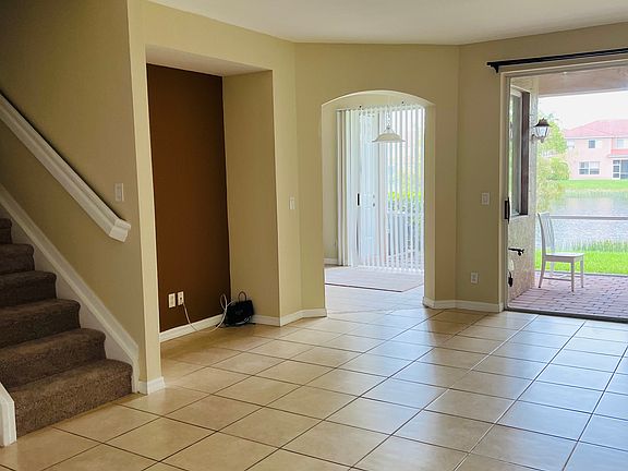 Beautiful and spacious 3 bed room/ 2.5 bath townhouse in a wonderful gated community! This unit is on the lake, Tile floor in living room. Large eat-in kitchen, open and bright living room with direct access to the lanai to the lake. half-bathroom on the first floor. Three bedrooms, den, and 2 full bathrooms are located upstairs with new carpet. Master bedroom is huge with vaulted ceilings, spacious closets, and mirrored doors. Master bathroom features dual sinks and a large garden style soaking tub with a separate shower. Washer and dryer are in the unit. One-car garage is attached with additional parking spaces in the drive-way.