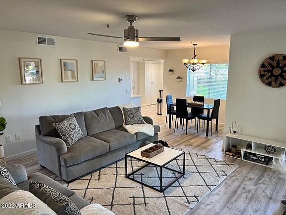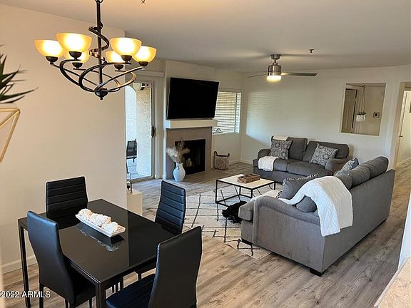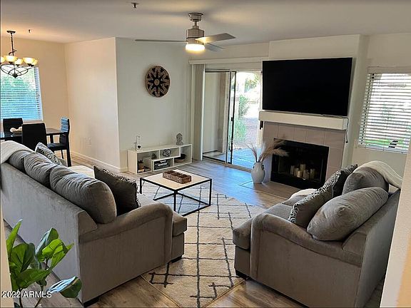 Beautiful rental condo Newly renovated in the perfect central Scottsdale location! First-floor unit with designer finishes, beautiful Vinal plank floor, abundant natural light, upgraded fixtures & a convenient den for an office / extra bedroom. The spacious living/dining room boasts a warm fireplace & sliding glass doors to the back patio. The stunning kitchen features ample white cabinets, lavish granite counters and backsplash, recessed lighting, all new stainless-steel appliances, & a breakfast nook. Master bdrm w/ backyard access, walk in closet & a private upgraded ensuite with double sink/make-up vanity combo w/all new bathroom fixtures. Sit back & relax under the covered patio or enjoy the community pool and tennis court. Arizona Luxury living at its finest.
