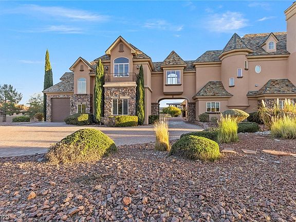 Introducing "The Castle," an exquisite Luxury Resort exuding Majesty and Sophistication. This Grand Residence, nestled in the highly coveted NW part of Las Vegas, sprawls across 2.24 Acres. Boasting 6 Beds, 9 Baths, and 9400 square feet, this estate is a testament to luxury living. The heart of this home features a Gourmet Chef's Kitchen with a Butler's pantry & walk-in cooler inviting you to embark on a culinary journey fit for Royalty. "The Castle" features a Separate Multi-Gen Apartment, perched above a 7-car garage, alongside an RV garage & two separate Casitas below. Privately Gated with its own Orchard, A Resort-Sized Pebble Tech Pool, Water Fall, Water Slide, & an enchanting Veranda is an ideal setting for hosting and leisure. Unforgettable amenities include a Gym, a luxurious Sauna, and a Game room creating an unparalleled living experience. Immerse yourself in an unrivaled lifestyle of elegance and elite living. This extraordinary property is priced under the Appraised value.