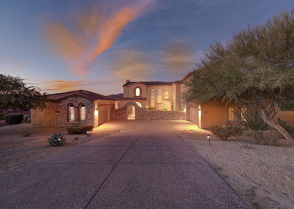 Gorgeous Mountain and Sunset Views in this 5 Bedroom, 5.5 Bath Home situated on one of the most elevated lots in the gated community of Sierra Norte! A courtyard entry with modern water feature greets you to the front door and spacious formal living and dining area. 2020 Remodel improvements including engineered wood flooring, interior paint, painted cabinets, carpet, removed pony walls, kitchen backsplash, master bath quartz counters, master bath soak tub, refinished bathrooms, lighting, fans, & much more! A greatroom features island kitchen with upgraded stainless steel appliances and 6-burner gas range, casual dining space, and family room with exit to the backyard. One ensuite bedroom, large office, powder room, and laundry room are all on main level. Upstairs is a luxurious master suite with huge balcony to take in mountain views and sunsets (back faces north), quartz countertops, large shower, and 2 walk in closets. Also upstairs is a bonus room and additional three ensuite bedrooms. Backyard has a firepit and plenty of patio area. Enjoy Arizona sunsets, city lights, and mountain views all from this amazing home! The community includes a park and playground, as well as lighted tennis court. Home has numerous additional upgrades 2021/2022. New pictures coming shortly with current owner upgrades 2021/2022. 1-yr. lease unfurnished. Furnished negotiable if needed. Will consider pets. Utilities - Renter's responsibility. The house has (2) double car garages..........the detached garage is NOT included as Owner's will be using for storage. Brand New 8 person HOT TUB 6 months ago!
