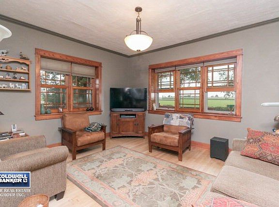 Country home with character and charm, beautiful, quiet, country setting with a renovated Belgium Brick home, a heated log work shop, a century old barn, pole building and fenced pasture. The kitchen is tastefully designed with an abundance of cabinets, center island, ceramic tile, and solid surface counters. The bathrooms have been attractively updated, 1st floor laundry room, hardwood floors throughout, built in cabinets for additional storage and an attached two car garage. This home has been well maintained with new windows and doors in 2005, new furnace in 2016, new cement board siding on the garage and laundry room in 2014. This property has character and charm with plenty of room for your horses or goats!!!Workshop is and outbuilding