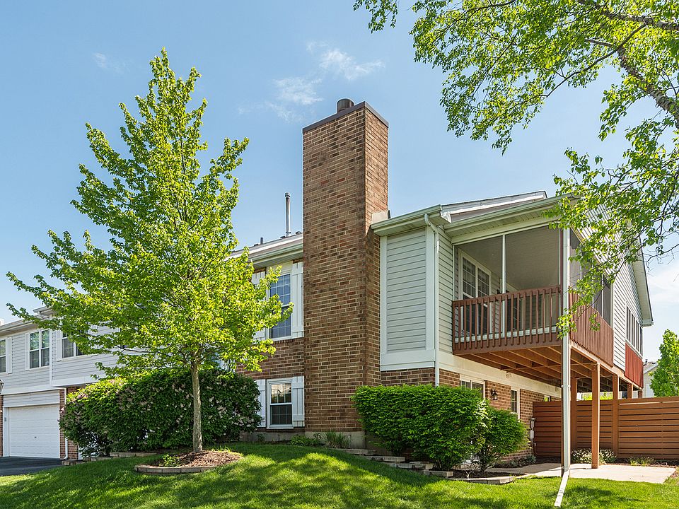 This home is for those who want to feel like they have a house but do not want to take care of the lawn, snow removal and the exterior of the home. Simply, wake up every morning and have a cup of coffee on your private screened-in balcony overlooking a peaceful pond and sunny southern exposure. When you come home from a long day at work, enjoy an evening of quiet in front of your fireplace on colder nights. This spacious corner end unit is a Raised Ranch style townhome. You will love the sunny light that streams into the dining and living rooms. The kitchen has loads of cabinets, a pantry closet, a pass through to the dining room and vaulted ceiling with skylight. The lower level features a fireplace with gas starter, a wet bar and a sitting room area that could become another bedroom perfect for related living since there's a full bathroom with shower on the same level. The Master suite offers vaulted ceiling, a walk-in-closet with organizers, and is accessible to a full bathroom with tub and separate shower. Updates include vinyl wood like flooring, sink and light fixture in the kitchen; windows; hot water heater, 2017; roof, 2014 approx.; Humidifier, 2010. Great location!! Near schools, walking paths, and park, Metra and tollway and an array of restaurants and stores.