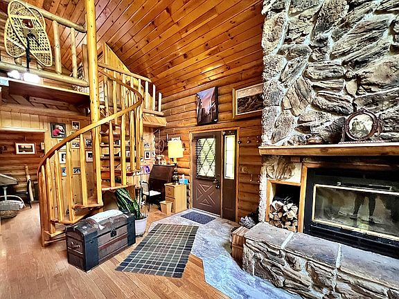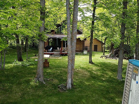 Welcome to your TURN KEY log cabin on Borden Lake! This one-owner log home has been well loved & cared for and is ready for its new owners. Nicely situated along a no-through road, this property has lots of beautiful mature trees providing 1.4 acres of park-like privacy. Offering 118ft of sandy, north facing lakeshore, dock and breathtaking panoramic views. This 3 bedroom, one bath cabin presents an authentic Up-North feel with an open living room, dining room and kitchen layout. Enjoy the year-round cabin life with ELECTRIC and pellet in floor heat; or stay extra warm and cozy when you cuddle up next to the beautiful stone fireplace that is ready for use. Sold mostly furnished and also includes 2 paddle boats, a sail boat and pontoon boat (no trailer). The 2-1/2 car garage is heated/insulated and the grill, log splitter, Kawasaki mule and utility trailer are all included as well. Compliant Septic certificate. You can’t beat all of this, plus the level of lakeshore and all that Borden Lake has to offer. An easy drive from The Twin Cities - properties on this lake do not last long so schedule your showing today.