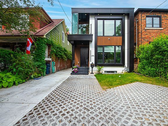 Welcome to this Ultra-Modern Home at prime East York (Greek town) location. 4bedroom home w Exterior Composite & Fluted Panels & Glass Railing. Open Concept Large Kitchen W center island, High End WIFI Controlled S/S Appliances, Quartz Counter Tops, Centre Island W Book Shelve. Stairs w/Glass Railings. Lots Of Sunlight. Voice Cont Smart Home. Central Sound System. Main Floor W large family room about (16x17ft) built in fireplace and wallunit. All Bedrooms w walkin closets, lots of storage space. Large Master bedroom with 7pc ensuit w both side large windows & walkout to balcony. Balconies at the front and back. Theatre In Basement w/Attached Wet Bar & Built In Wine Cooler. Sep Office & Nanny's Room w/4pc Ensuite. Front Yard Legal Parking. Smart Front Door Lock Controlled By Phone, App Fob code & key. Walking distance to new ontario line. **Rough In Kitchen & Laundry in Bsmt** Seller is willing to negotiate walkout entrance if requested.