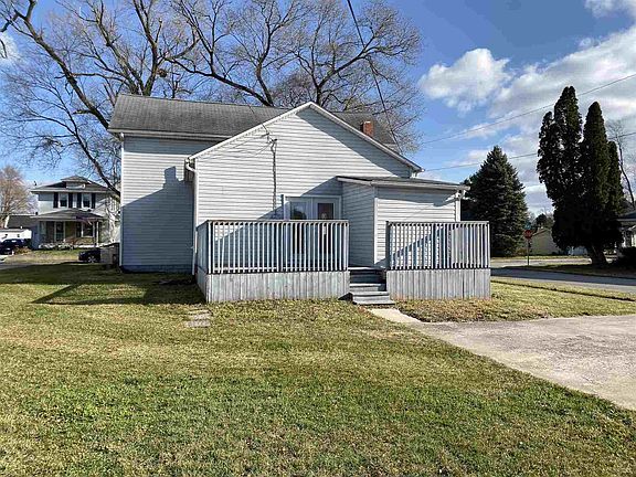 Large two story home on corner lot with ample area for a fenced in back yard, two car garage with side area storage or room for that work bench, wood deck, covered front porch, and old style wood work inside. Kitchen has a pantry and plenty of room for a dining room table. Convenient 1/2 bath in upper bedroom. Main floor full bath with washer/dryer area as well. Full basement. Newer flooring and updates surround this wonderful home inside and out. Heat pump as well.