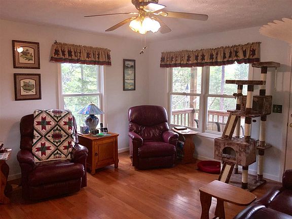 Cabin Nestled in Mountains private with great mountain views on 5.47 acres, custom built by Don Norwood inn 2006, Main level holds a Living room with a double sided fireplace to dining room kitchen, large laundry room with washer ands dryer that stays, Master bedroom with private bath, master bedroom has great mountain views and opens up to a porch over looking mountains, upper level has two nicely sized bedrooms and a bathroom between them, each room has good closet space, master does have a walk in closet. Home is private, seller have feeders in yard and have abundant wildlife. no other homes can be seen from this home, acreage is wooded all but house seat and yard around it