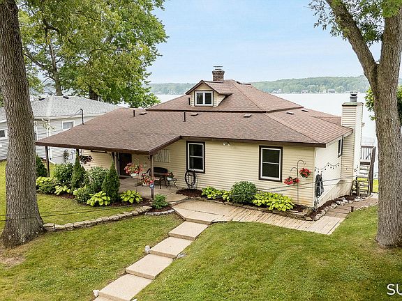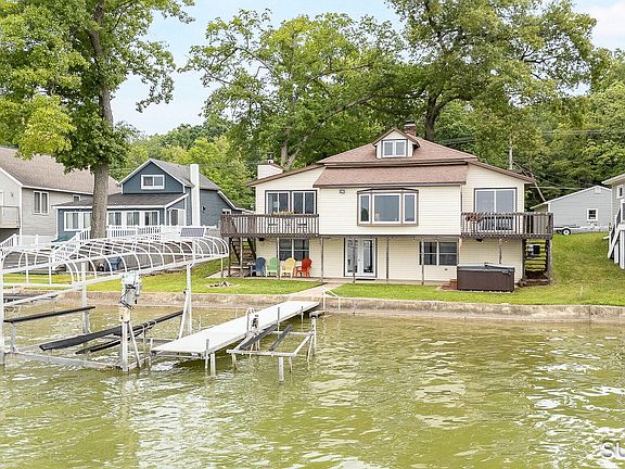 Enjoy summer fun at this sweet cottage on 755 acre all-sports Hess Lake! Prefect low bank with, sun & shade, plus concrete seawall! This 4 bedrm, 1.5 bath home offers main fl laundry, huge kitchen with ample cabinetry. Gorgeous views throughout! Lakeside deck is perfect for sunsets & drinks while enjoying the panoramic view! Main fl primary bedrm has convenient walk thru full bath. Living rm has brick fireplace for cozy yr round enjoyment. Finished walkout lower is dry & perfect for added living space, including a 4th bedrm that currently just needs a door added. Large 24x32 garage for all of your toys. Prime location, 45 min to GR or Muskegon. Close to hiking, snowmobile trails & Muskegon River for world class fishing. Also close to historic downtown Newaygo for cute shops & eateries.