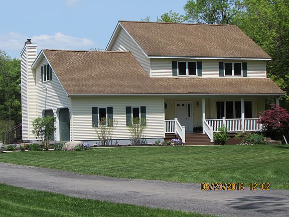 Immaculate Colonial on 7.5 gorgeous acres. Brand new roof (4-17)w/transferable warranty. Entire house completely painted, including garage, basement, porch and deck. Hardwoods refinished, SS appliances (fridge 2016, dishwasher 2015) Walk out basement. Koi pond. Additional 2 car detached heated garage with workshop and loft. Gorgeous property with room to roam and entertain. Great schools! Just move in and enjoy!