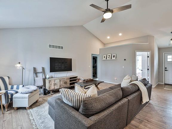 Open concept 3 bedroom 2 bath ranch home. LVP flooring throughout. Vaulted ceilings. Updated kitchen with granite and island. Updated bathrooms. Screened in porch overlooking fenced yard. Flat driveway and yard. Full unfinished basement. Close to pool. Enjoy all the amenities of this lake community.