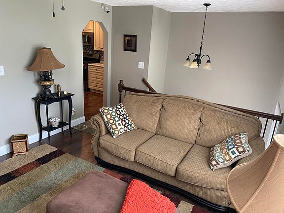 Immaculate 1600 sq ft split foyer home on large lot in convenient location. This home has been completely renovated! All new flooring throughout (Pergo/Carpet & Tile Up and LVP down). Kitchen has gorgeous new cabinets, countertops, tile backsplash, and all new appliances incl gas stove. Open living room & dining room & all bedrooms are on the top level. Front entrance stairs make a beautiful first impression with hardwood and iron railings. Additional large family room downstairs. Large room off of family room is a perfect home office or play room! 1 car oversized garage with laundry room and tons of space for storage! Enjoy evenings on your new covered patio overlooking large fenced in back yard. Hybrid HVAC (2018). 8 camera surveillance system remains. Smart Thermostat. USDA Eligible!