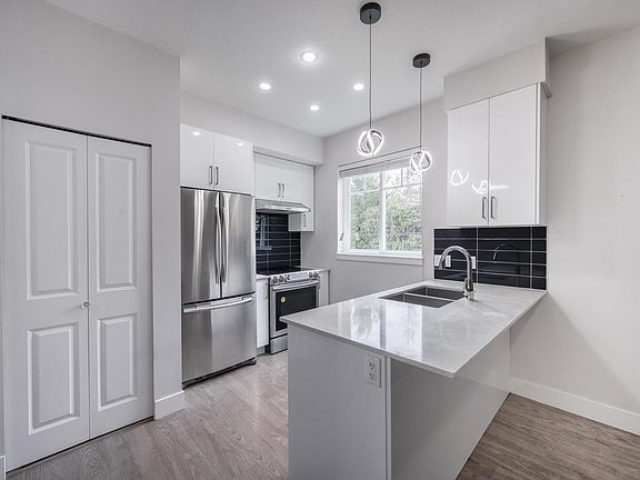 Exceptional value for the size, layout, and recent updates! 2025 Renovated SE Corner End Unit! This like-new, A/C-equipped townhome offers: ground-level master bedroom with ensuite (bright SE corner); spacious second-floor bedroom with full bath (naturally lit NE corner); and an entire third floor dedicated to an expansive master suite. BONUS: 110 sq ft of extra space from two newly renovated enclosed balconies—ideal for office or hobby use. Bright main floor with living room, family room, and separate dining area. New laminate flooring & stairs, updated lighting, side-by-side double garage, and large fenced front yard. Open House: Sat, Oct 04 | 2–4 PM