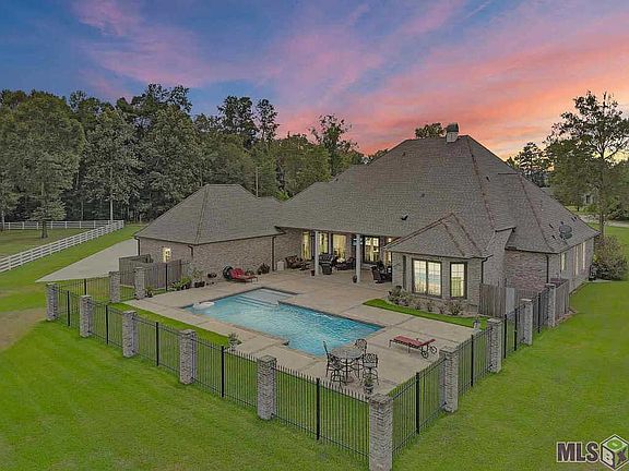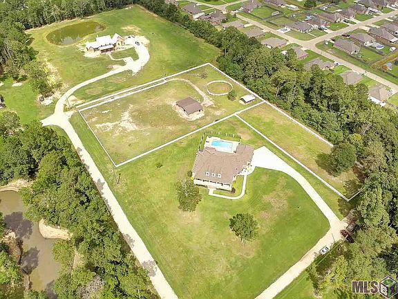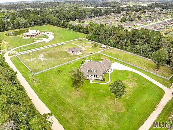 Magnificent home in Watson on 5+ acres! This luxurious, country estate has it all! Located at near the end of a quiet road, this home is tucked away on its own little slice of Louisiana paradise! 5.43 acres gives your family tons of space to stretch out and enjoy the amenities this property has to offer. As you enter through the front door, you're greeted by the beautiful front porch and classy foyer. You'll notice the gorgeous chandeliers which are prominent throughout the home. The kitchen features upgraded Thermador Appliances, a huge island for entertaining, top-grade granite & fixtures, and tons of cabinet and counter top space to prep your meals. The master suite is a true retreat, featuring a sitting area as well as a spa-like en-suite bathroom. Relax after a long day in the large soaking tub, or unwind in the beautifully tiled, multi-head shower. The master closet is a dream, with plenty of hanging space as well as built in cabinetry. Downstairs you will also find two oversized, additional bedrooms adjoined by a Jack-and-Jill Style Bathroom. Moving upstairs you'll be pleased to find an enormous bonus/game room. This space is the perfect place to set up the pool table, or even a home theatre! There is even a built in bar with a sink, refrigerator and granite counter tops. You will also find a full bathroom off of the game room as well. Out the back door is where the real adventure begins. The fully fenced back yard is the perfect place for summer barbecues or watching the big game! The back patio features an outdoor kitchen set up that is already plumbed and vented, ready for your grill! The gunite pool is a true retreat to relax & beat the heat! You'll also find the barn, which features three 16x16 stalls as well as a full bathroom with a shower, perfect for you to clean up after tending to the horses all day. You can also rest easy knowing this home is protected by a whole-home backup generator & security camera system. Call to set up a showing today!
