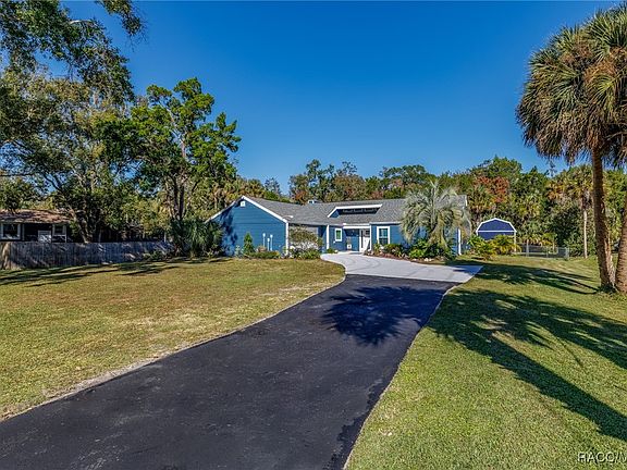 FALL IN LOVE with this Homosassa canal-front charmer! This inviting 3-bedroom, 2-bath home blends classic character with modern updates. A newer roof, upgraded kitchen with new appliances, upgraded bathrooms, cozy built-in electric fireplace in the dining room, and two BONUS outbuildings provide extra living space use it for a She Shed, it has new flooring and paint, AC too, making it MOVE IN READY. The second Shed is 12by 24 with a front porch and a loft as part of the interior sq ft. Super cute with AC. Step outside the impact glass slider doors to a backyard made for relaxation—with a Tiki deck and outdoor bar area, screened-in sparkling pool, outdoor shower, lush landscaping, and your own dock. There is 3,000lb jet ski lift with ramp just steps from the back door. Chain link fencing in the back yard for Fido. The land across the canal is a preserve. Local area favorite waterfront restaurants are very close by, and the grocery and pharmacy are less than 2 miles.