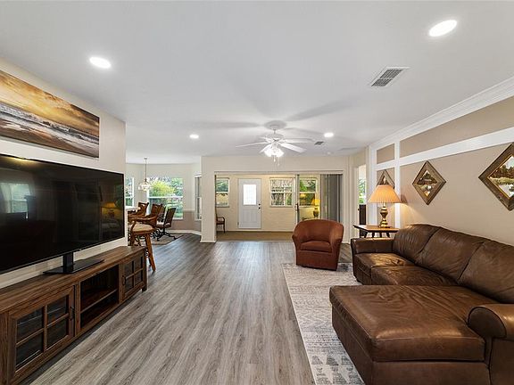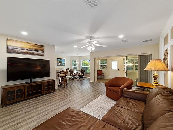Lovely Wakefield model on a corner lot in On Top of the World Communities. Located in the neighborhood of Providence. Open floor plan, two bed, two bath home with a flex room. Home is ideally located and is a short golf cart ride to an indoor pool, outdoor pools, fitness centers, tennis courts, pickle ball courts, three golf courses, private R/C flying field and so much more! Luxury vinyl flooring in main living areas. Berber carpeting in bedrooms and flex room. Newer blinds with easy touch lift system are throughout the home. Flooring and blinds installed in 2021. Neutral paint in all rooms. Large walk-in closet and additional linen closet in en suite bath along with walk-in shower and extended vanity with dual sinks. Home has inside laundry with 2021 washer and dryer included! Kitchen has an eat-in nook and there is a separate dining area with bay windows. Mature shade trees enhance this corner lot. Located in Ocala's premier 55 plus community with golf cart access to shopping and restaurants! Please enjoy the video tour of this home.