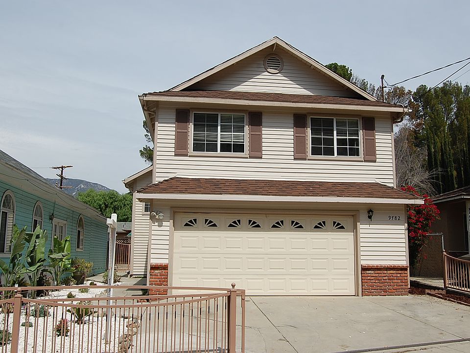 Great Traditional Home in Quiet, Private Residential Area South of Foothill. Surrounded by beautiful trees, this 4 Bed/3 Bath Home is low-maintenance with laminated floors throughout the entire home. Walk into an open, high celing and airy Living Room with Fireplace.Amazing family room connects to the open Kitchen through French Doors. Kitchen has Island, lots of counter space, and additional space for breakfast area or entertaining. Master Bedroom has Bathroom with his and hers sinks. Backyard has ample space for Patio, BBQ, and more that is great for families and children to enjoy. Home is Gated with Front Driveway and Garage. This is a wonderful home that requires low maintenance. Perfect for families in this great quiet area of Tujunga.