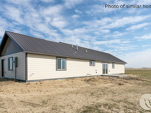 Your Montana country lifestyle awaits in this newly constructed one-level home on 1+ acre. Wide open views in all directions, this brand new home offers affordable rural living and plenty of elbow room, all just 20 minutes from city conveniences. Private septic, two 2,200 gallon cistern(s). Room for shops, toys and a quiet, relaxed lifestyle. Oversized garage, maintenance free exterior. Photos are of similar home(s).