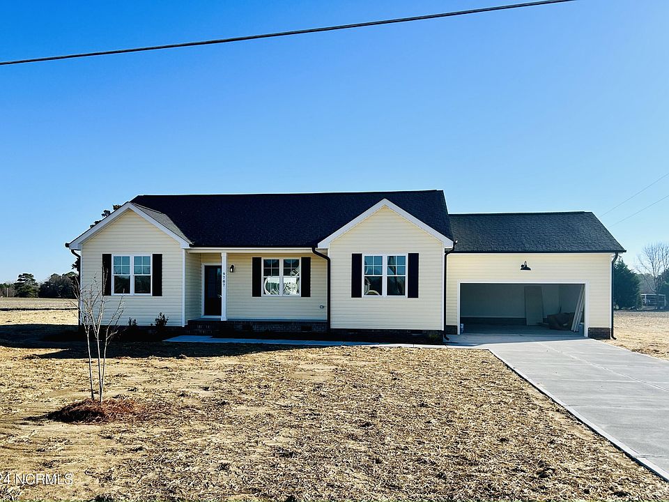 Just reduced! New construction 3BR/2BA home on a 1.28 acre lot! Enjoy quiet country living in this one-level 1,500 SQFT open concept floor plan with covered front porch and 2-car garage. Kitchen features white custom cabinets, granite countertops, subway tile backsplash, kitchen island, stainless steel appliances and pantry. Painted wood shelving throughout. Spacious primary bedroom with walk-in closet. Primary bathroom with double granite vanity and ceramic tile walk-in shower. Laundry room just off the garage entrance. Luxury vinyl flooring in common areas and carpeted bedrooms. Seller is offering $3K in buyer's closing costs if settlement is completed with one of seller's preferred attorneys.