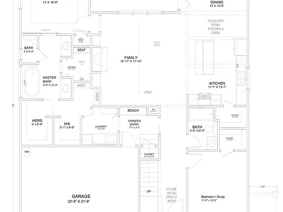 - Breakfast Room, Double Vanity, Eat-in Kitchen, Granite Counters, High Ceilings, Pantry, Primary Downstairs, Separate Dining Room, Separate Shower, Soaking Tub, Tub/shower Combo, Walk-In Closet(s)