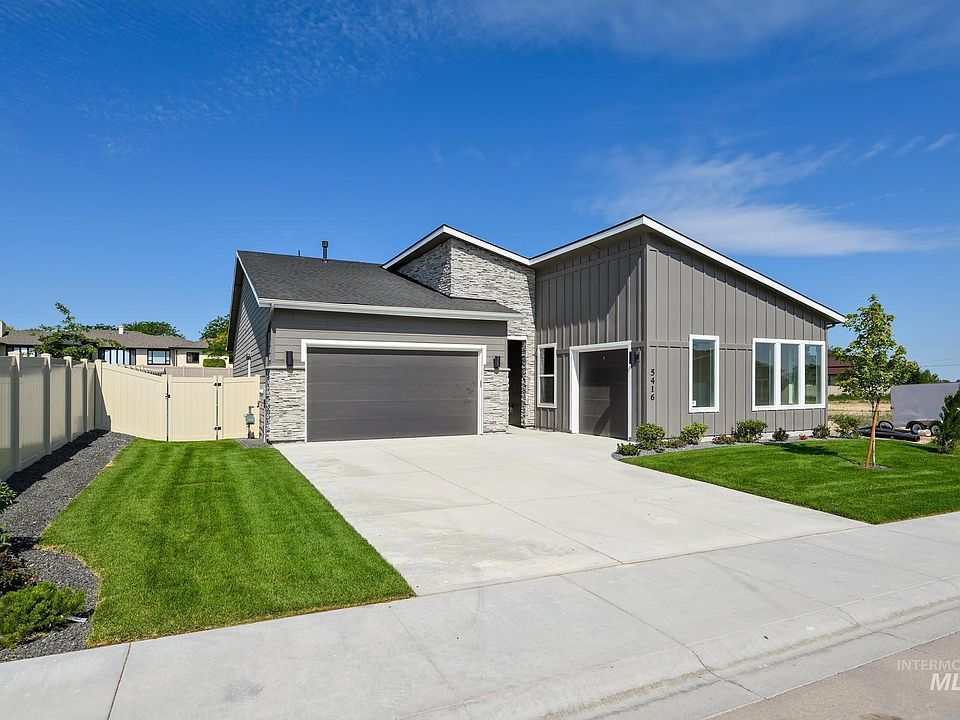 In the Camas, contemporary design meets functional elegance in a beautiful single-story home design. Upon entering, a grand foyer guides you toward the expansive great room which seamlessly merges with the kitchen, casual dining area, and large covered patio through multi-panel glass doors. Two secondary bedrooms share a bathroom at the front of the home, along with a powder room conveniently located off the great room. Tucked away at the back of the home, the primary bedroom suite features two walk-in closets, separate vanities, and a luxe shower. From its inviting foyer to its spacious living areas and practical amenities, the Camas embodies the essence of modern living, offering comfort, style, and functionality for every lifestyle. Split 3 car garage. Front and rear landscape included. Home is under construction. Photos are similar. BTVAI