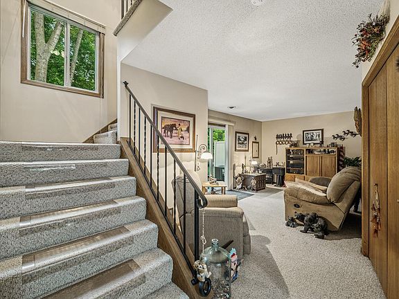 Welcome home to this quiet townhome surrounded by green space and with convenient access to Riverdale, Northtown Mall, groceries, theater, trails and parks. Large rooms and multiple storage options allow for comfortable and easy living. The downstairs 19x10 family room walks out to a newer 24-ft patio overlooking thick woods and your own "fairy tale" garden to enjoy. New washer/dryer (2021), A/C (2018), newer windows and patio door. Ducts cleaned in 2021. Sellers offering $3,000 carpet allowance with acceptable offer.