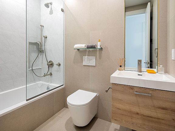 The Garden Apartment is a Two bedroom, Two Bath home spanning two levels of this , wide townhouse. The garden floor offers an open plan living and dining area with 7-inch white oak flooring, two bedrooms and two half baths, and direct access to an expansive private landscaped patio and garden. this bay windows with tons direct sunlight in the living room, a convenient in-unit washer/dryer, and a collection of high-end fixtures and finishes.
