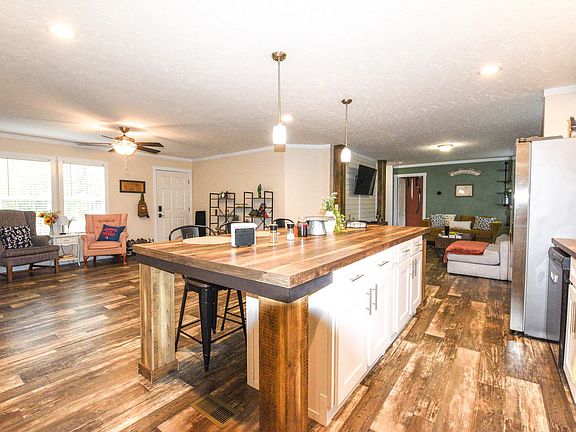 Welcome to this beautiful secluded home with stunning views, nestled in the Captain's Landing subdivision. Boasting an open floor plan, this home features a beautiful kitchen with sleek cabinetry and a large central island, perfect for both cooking and entertaining. The spacious living areas, including the living room, kitchen, and family room, are all enhanced with durable luxury vinyl plank flooring.This home offers a thoughtful split-bedroom layout, with a generously sized master suite complete with a double vanity and walk-in closet in the en-suite bathroom. Two of the secondary bedrooms are carpeted for comfort, while one bedroom features the same stylish luxury vinyl plank flooring found in the main living spaces. Set on nearly an acre (.90 acres), this home offers privacy and tranquility, while still being conveniently located on a paved road. Ideal for those seeking modern comforts in a peaceful, yet accessible setting.