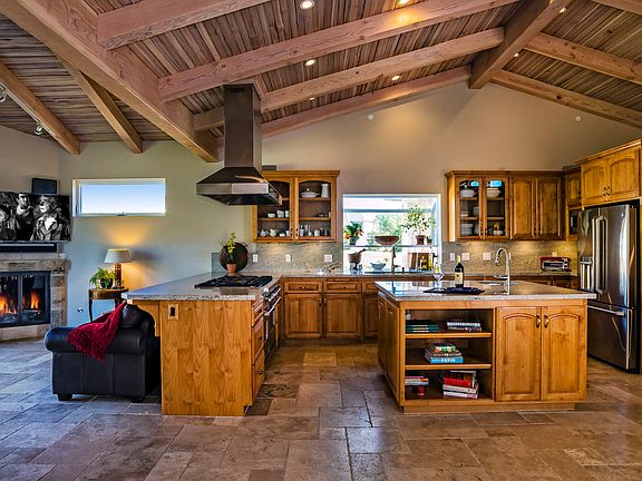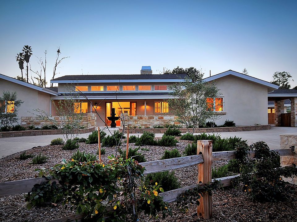 Gorgeous new custom home built in 2014. Eco friendly with solar panels covering all electric bills, water catch basin with pump that moves water directly to the drip system for drought resistance plantings. Stone imported from France. Large gourmet kitchen. Fruit trees.