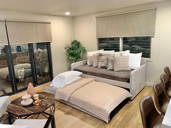 Surrounded by lush mango and plumeria, this one-story retreat gives treehouse vibes and surprising tranquility just steps from downtown.