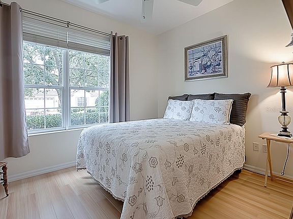 NO BOND. Located in the Village of SABAL CHASE, right in the heart of living near LAKE SUMTER LANDING MARKET SQUARE & all the amenities including executive golf & communities pools that The Villages has to offer, this lovely 3/2 SOMERSET designer home is MOVE IN ready. OWNERSHIP PRIDE & METICULOUS care shows throughout. The desirable SPLIT/OPEN FLOOR PLAN has appealing architectural elements adding so much CHARM & CHARACTER. Interior features NEUTRAL color pallet, LAMINATE & TILE (NO CARPET) throughout, VOLUME ceiling, SOLAR TUBE, ceiling fans (NO POPCORN TEXTURED ceilings here), NATURAL GAS, kitchen PANTRY closet, built-in desk in the kitchen area, pretty oak cabinets with pull out shelves, BREAKFAST BAR, NEWER APPLIANCES (electric range, however, PLUMBED for gas), WALK-IN CLOSET & DUAL SINKS in the Master bedroom suite. FRENCH DOORS open to the 3rd bedroom serving as a DEN with a decorative, electric FIREPLACE. The ENCLOSED LANAI has tiled floor, ceiling fans & solar shades providing additional privacy to enjoy indoor/outdoor living space & a nice sized patio area to grill & soak in those amazing SUNNY Florida days & weather. The OVERSIZED garage has room for 2 cars & an inset for the golf cart, pull down stairs to ATTIC STORAGE, MATURE LANDSCAPING & curb appeal with a PAVER DRIVE & WALK WAYS. Simply PACK YOUR SUITCASES, MOVE RIGHT IN & START LIVING THE DREAM within minutes of community pools, golf courses, rec centers, pickle ball, nightly entertainment & fun. Pet free & smoke free home. TURNKEY package & 2 electric golf carts available for purchase. Call for your private or virtual tour.