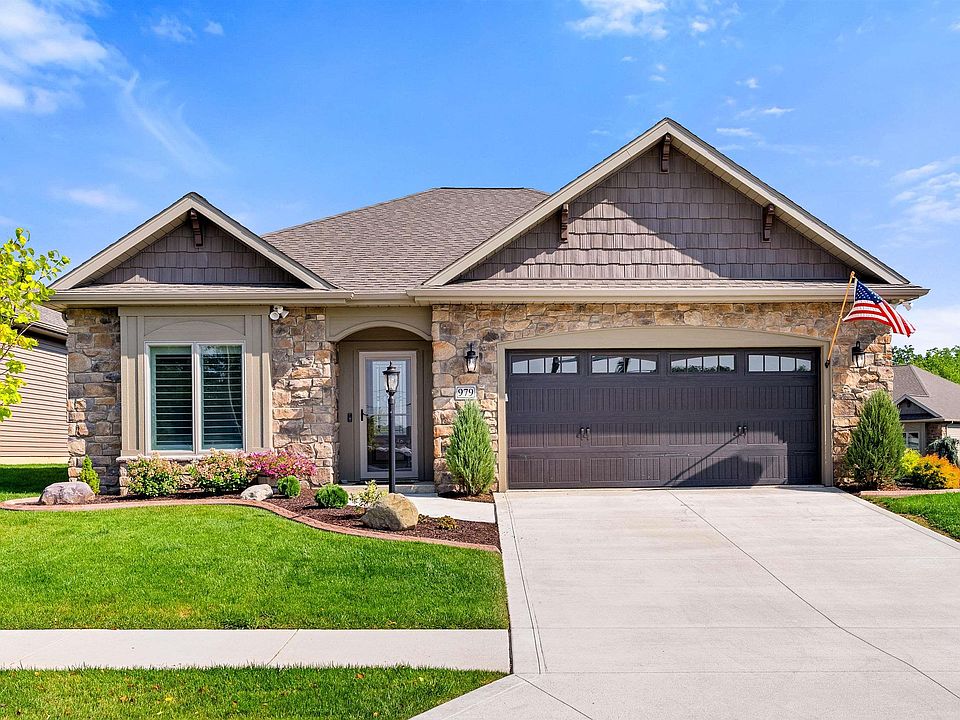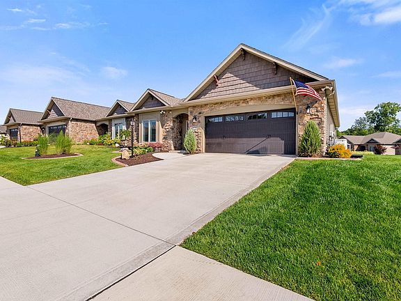 Less than 2 years old and ready for you to move right in! This 3-bed, 2-bath Majestic Waters Villa offers maintenance-free living so you can spend more time enjoying life and less time shoveling snow or mowing the lawn. Step inside to find a bright, open floor plan featuring a gourmet kitchen with a huge walk-in pantry, soft-close cabinets, and plenty of space for entertaining. The split bedroom layout gives everyone privacy, while the cozy gas fireplace and tray ceilings in the living room add just the right touch of warmth and style. The primary suite is a dream with a generous walk-in closet that connects directly to the laundry room, plus a large walk-in shower you’ll love. Every window has custom plantation shutters, and the patio doors to the screened-in porch feature a remote-controlled blind for convenience and privacy. Other perks? Upgraded lighting, proplex flooring in both the garage and porch, tons of garage storage, and the peace of mind that lawn care and snow removal are all handled for you. This villa is truly the perfect blend of comfort, convenience, and style—don’t miss your chance to call it home!