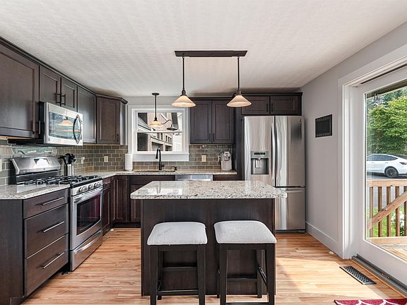 Tucked away on 2.67 acres, this beautiful, move-in-ready home offers tons of updates and a prime location! As you step inside, you’re welcomed by a spacious and inviting entryway. The thoughtfully designed kitchen features rich wood cabinets, sleek granite counters, stainless steel appliances as well as a custom pantry. A sliding glass door leads out to the large deck, and back inside, the open-concept layout flows seamlessly from the kitchen to the dining space and living room with a cozy gas fireplace. Upstairs you’ll find two generously sized bedrooms and a full bathroom. Above the heated two-car garage, is the true highlight of this home - the expansive primary suite! This space is a calming and serene retreat, complete with warm accents like the wood-clad ceiling and beautiful hardwood floors. The bonus area is ideal for a home office or sitting room and features a balcony overlooking the peaceful backyard. You’ll also find a large linen closet and ensuite with a tiled shower, and at the end of the hall, the large primary bedroom offers plenty of storage with a walk-in closet. The outdoor space is equally impressive, with lush flowerbeds all around and the mature treeline shields the backyard creating a relaxing oasis complete with a patio, pergola and garden shed. The central location means you’re only minutes from downtown Morrisville or Stowe, where you can enjoy local shops, restaurants and easy access to hiking and skiing!
