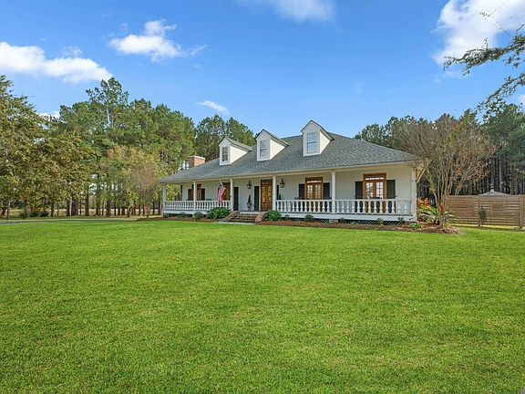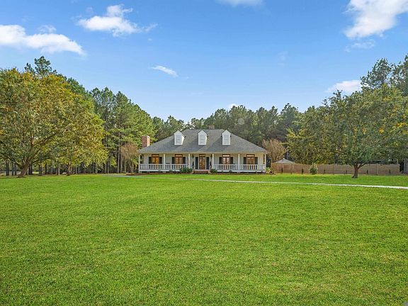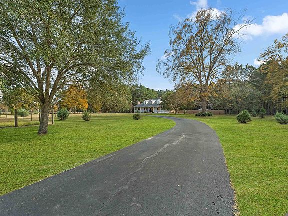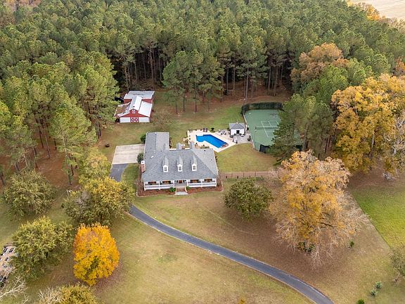 An oak-lined asphalt driveway creates a beautiful approach to this custom built home set on 63.8 acres with 5 bedrooms, 3.5 bathrooms, plus an office and a whole-home generator. This home offers the kind of space and comfort that’s hard to find. Enjoy spending time outdoors with an in-ground pool, outdoor kitchen, tennis court, and expansive front & back porches. Inside, antique heart pine flooring, antique beams, interior brick arches, beadboard ceilings, and antique cypress doors add warmth and character throughout. The impressive kitchen is equipped with a commercial grade 6-burner dual-fuel range with double ovens and griddle, a large island, custom cabinetry, reverse osmosis filtration, and touchless foot-pedal controls at the sink. A sitting room with a fireplace sits just off the kitchen and opens to the large formal dining room. The living room features a stately brick fireplace and windows overlooking the back porch/yard. The expansive primary bedroom features its own fireplace, and attached room that could serve multiple uses, a large en suite bathroom, and a huge walk-in closet. Downstairs also includes a surround-sound system with multiple zones and a whole-house central vacuum with hose sets for each floor, an office, a spacious laundry room with sink and cabinetry, and a half bath. Upstairs, there are 4large bedrooms and 2 full bathrooms. Recent updates include a new roof (2023), insulated downstairs windows (2024), updated HVAC units, a resurfaced tennis court (2024), and other improvements throughout the home. The acreage is both cleared & wooded, including approximately 50 acres used as hunting land. A 3,400 sq ft barn provides RV and boat storage along with workspace. Additional features include underground irrigation with tree drippers, French drainage, hard-wired for security cameras, and two large dog kennels with insulated houses. An incredible combination of acreage, amenities, and enduring craftsmanship, this property has so much to offer!