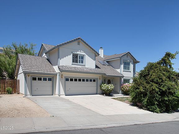 Discover this well maintained 3-bedroom, 2.5-bath home offering 2,192 sq. ft. of comfortable living space, ideally situated just minutes from the University of Nevada. Set on over a third of an acre, this beautiful property features mature fruit trees and its very own private vineyard—perfect for garden enthusiasts or anyone who loves the charm of a cultivated outdoor space. Inside, you'll find hardwood floors in the living and dining rooms, complemented by plantation shutters that bring in abundant natural light while offering privacy. The kitchen is both warm and functional, featuring rich alder wood cabinetry and a center island ideal for cooking and entertaining. Upstairs, the primary bedroom offers views of the city skyline, making for a serene retreat at the end of the day. Step into the upper backyard to enjoy those same panoramic views—an ideal setting for relaxing or hosting guests. Additional highlights include a large, deep garage with plenty of room for storage or workshop space, and a thoughtful floor plan that blends everyday functionality with timeless style. This home combines privacy, location, and charm—don't miss your opportunity to call it home!