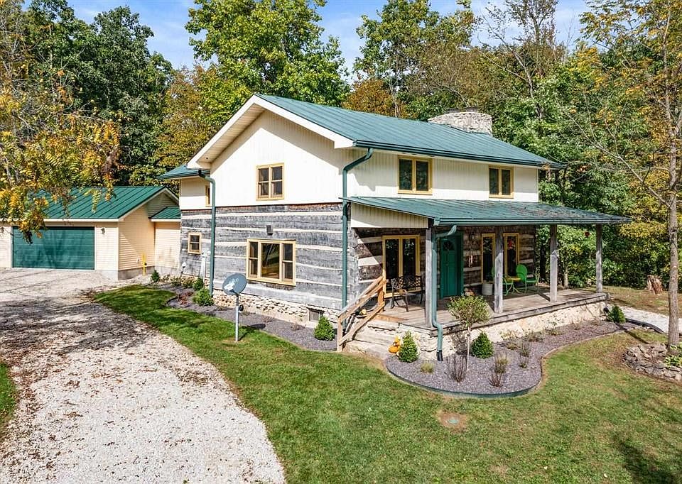 First time on the market for this secluded log cabin with breathtaking views of the winding Mississinewa River. Custom built from timbers harvested on the property's 15+/- acre private woods. Five acres of gently rolling lawn play host to this beautifully landscaped home and Walnut Plantation. Nestled in nature's friendly surroundings this home provides two comfortable porches for relaxing or entertaining. A large concrete floored pole barn provides for hobbies, workshop or Gentleman's farm. All of these features while you enjoy the comforts of an attached garage, multiple heat sources and upgraded generator backup! Grab a drink from the hand-pump and make this "one-of-a kind" offering your own!