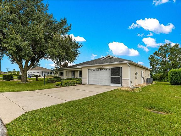 VERY POPULAR ANDALUS MODEL SINGLE-FAMILY HOME located in the Crescent Ridge 2 Neighborhood of On Top of the World, 55+ gated golf community in SW Ocala FL. This home is located on a PREMIUM corner lot with GREEN SPACE in back! Nice, wide driveway feeds into the 2+ car garage. 2 Bedrooms (Split Bedroom Plan), Flex Room, Great Room, Finished Lanai, Screened Porch, and MORE! Step inside the foyers and immediately notice the Luxury Vinyl Plank flooring THROUGHOUT (bedrooms & Flex floor just installed!). The kitchen w/electric range is in the front of the home with tile floor. With ample table space and tons of cabinets, this is an entertainer’s dream kitchen! The guest bedroom (split bedroom plan) is in the front left of the home, with guest/hall bath just steps away. The Flex Room is conveniently located off the Great Room with doors for complete privacy as extra sleeping space, and office, craft room, etc.! The spacious Great Room is light and bright. The Florida Room is finished and part of the conditioned living space! There is also a 3-season room – perfect for enjoying the stunning sunsets or just enjoying the Green Space privacy. Primary large bedroom in back right of home for privacy has a spacious walk-in closet, and en suite bath with step-in shower! The 2+ car garage has a 4 ft extension! The laundry is in the garage, with a side door to access the yard. ROOF 2017, HVAC 2013 (NEW CONDENSOR 2025) & DOUBLE PANE, ENERGY EFFICIENT WINDOWS 2012! The monthly HOA fee includes Basic Spectrum Cable, roof repair, exterior painting every seven years, exterior maintenance and insurance, landscaping, trash & recycling, 24/7 monitored gates and what seems like endless amenities; three pools (2 outside & 1 inside & another under construction), two state of the art fitness centers, pickleball (uncovered & covered), billiards, archery range, corn hole, bocce ball, tennis, shuffleboard, horse shoes, remote control flying field and race cars, 175+ clubs, woodworking shop (extra fee), library, and much, much more! A golf cart community with access to several shopping centers. Centrally located 20 minutes from the World Equestrian Center, easy drive to 4 cruise ports and/or airports, and within a close proximity to entertainment complexes in Orlando.
