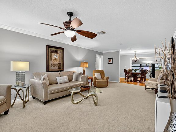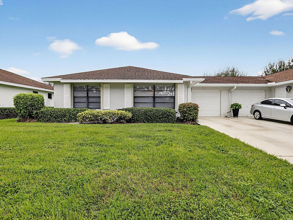 Welcome to this well-maintained villa offering comfort, style, and peace of mind. Community new roof project beginning in 2025 adding tremendous value and security complementing numerous recent updates including a new dishwasher (2024), new washer and dryer (2025), upgraded electric panel, new mailbox, and fresh exterior paint (2024), indoor paint (2023). AC and Water Heater (2020), garage door (2024). Enjoy the ease of accordion shutters for full storm protection and an inviting open sunroom leading to a brick patio perfect for entertaining or quiet relaxation. The elegance of crown molding accents the spacious living areas. The home features an extended driveway providing ample parking and convenience. Additional interior features include stainless steel appliances, a bright and ,,, functional kitchen, and a layout designed for easy living. This villa has been lovingly cared for and is move-in readyperfect for those seeking a low-maintenance lifestyle with tasteful timeless finishes. Enjoy resort-style amenities including a pool, clubhouse with stage, party room, library, and billiardsall within a friendly, well-kept community.