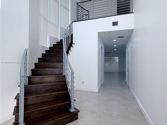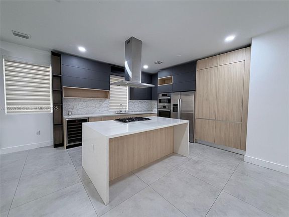 Luxury 4-Bedroom, 4-Bath Home in Modern Doral 45 Experience modern luxury in this elegant Model A corner-lot residence featuring beautiful spiral stairs, open living spaces, and tile & wood flooring throughout. The custom kitchen includes top-of-the-line appliances, gas range, and wine cooler. A full bathroom and side entry on the first floor add convenience and flexibility. Enjoy outdoor living with a covered pergola, summer kitchen, and private pool—perfect for entertaining. Located in the exclusive gated community of Modern Doral 45, offering 24/7 security, internet and alarm system included, plus a clubhouse with gym, pool, and lounge areas. Short distance to Doral Glades Park, featuring tennis courts, playgrounds, volleyball courts, nature trails, and family recreation areas.