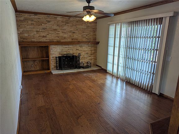Outdoor wood fireplaceBreakfast barCustom cabinetryPomegranate treeTile floorsLow maintenance backyardTurf lawn