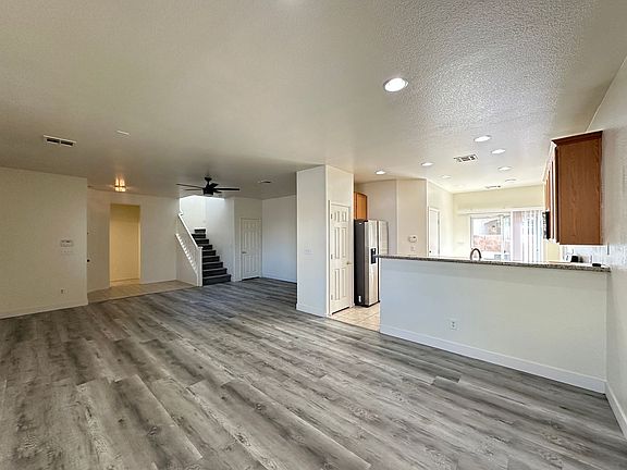 Abundant natural lightOpen kitchenStainless steel appliancesNew carpet upstairsNew laminate flooring downstairs