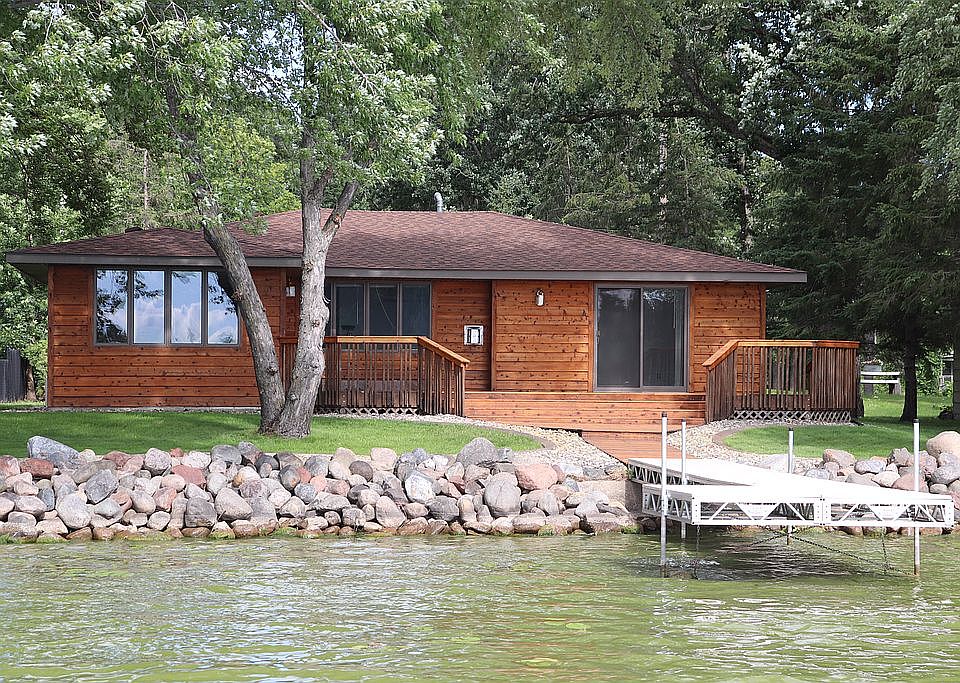 West facing 3 bedroom rambler on Little Rock Lake, lot is 60 feet x 305 feet. Cedar siding recently totally refinished, no steps to get into home from driveway via cement sidewalk. Master bedroom has patio door to deck, private door to main bathroom. Other bathroom has laundry area for stacking washer/dryer, utility sink around the corner. Kitchen has island with west facing panoramic view of the lakefront, custom cabinets. Living room has natural gas fireplace, home has in-floor heat on off-peak electric with new furnace. Large cedar deck across front of home linking 2 patio doors, one from master and one from the dining room area. Home has Andersen windows/patio doors. Home is 40 feet from the lake front and shoreline is rip-rapped with cement curbing for ease of mowing, home entirely surrounded by curbing with river rock accent. All closets have closet organizers and there is a front hall closet. Under the home there is a small cement block safe room with cement floor with steps to use during a storm. Home has a new deep well, new septic, in ground sprinkling, new roof, rented water softener, electric power has been placed underground to home, neighborhood newly fitted in 2022 with fiber optic cable for fast internet access. Driveway is black-topped, resurfaced 2022. New smooth asphalt township road to property 2022 .